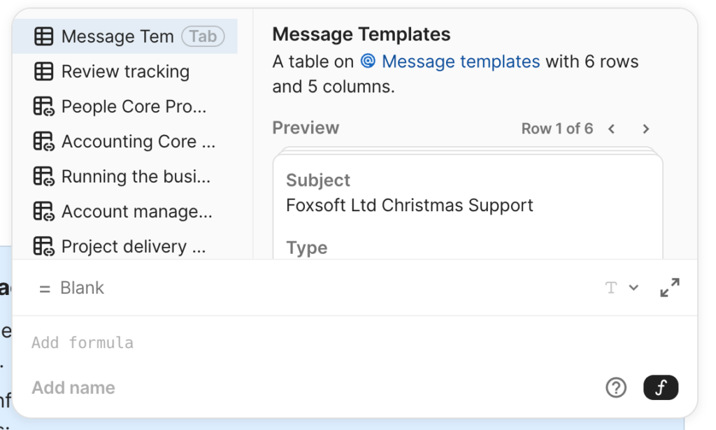The real power of Coda, however, lies in its low-code capabilities via its formula scripting language. Simply hit the equals (=) key anywhere in a document, and a formula editor appears, letting you build some truly dynamic functionality and automations.
